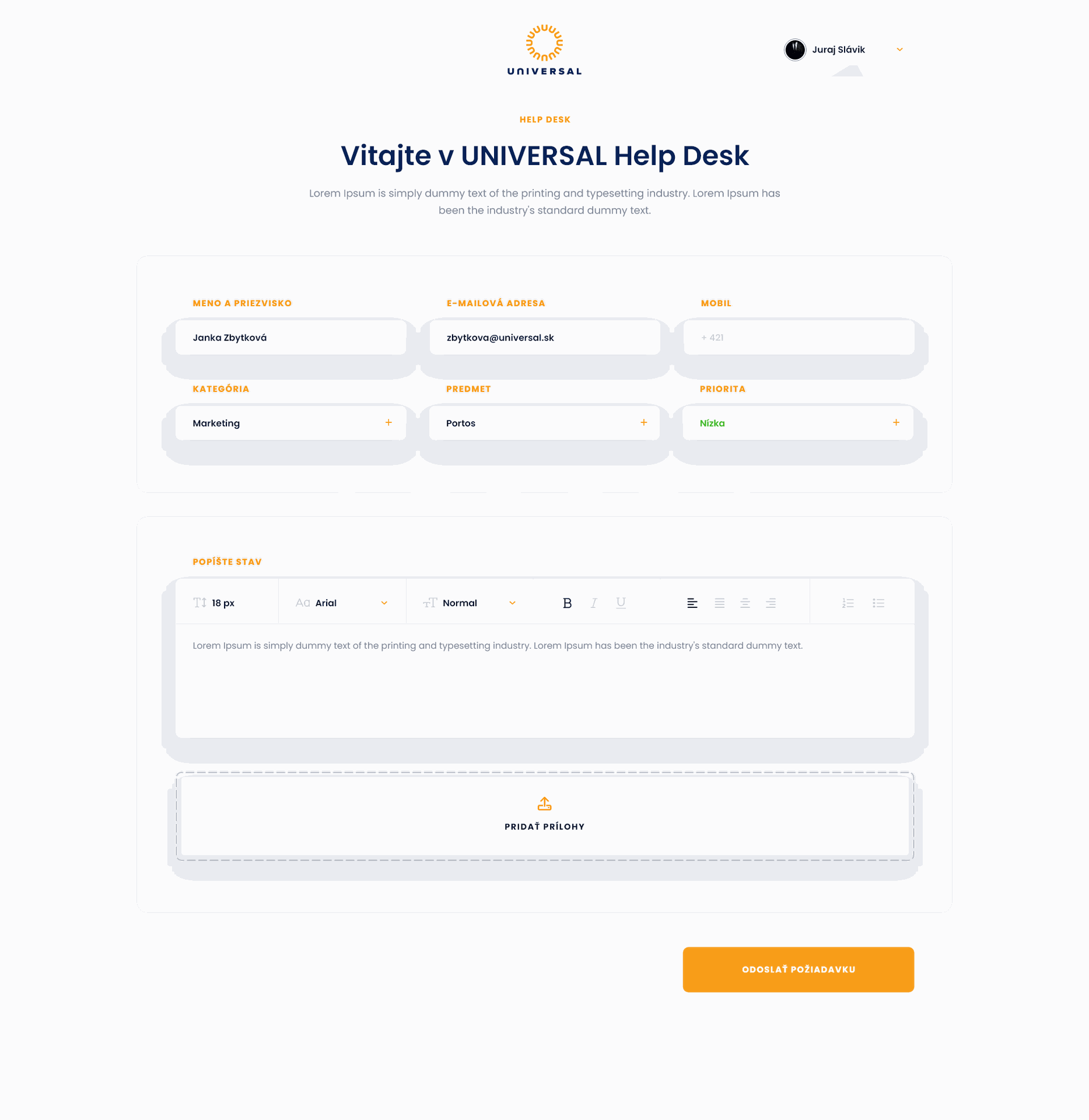- jednoduchý modul zadania požiadavky vo webovom prostredí
